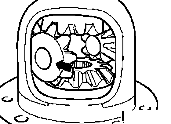 ^ Push the large differential bevel gears - in direction of arrow - and check backlash.