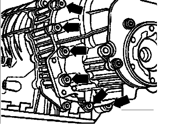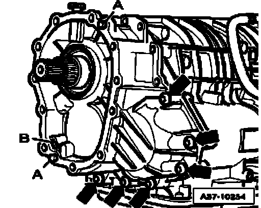 ^ Loosen bolts - arrows - of transfer case housing in diagonal sequence.