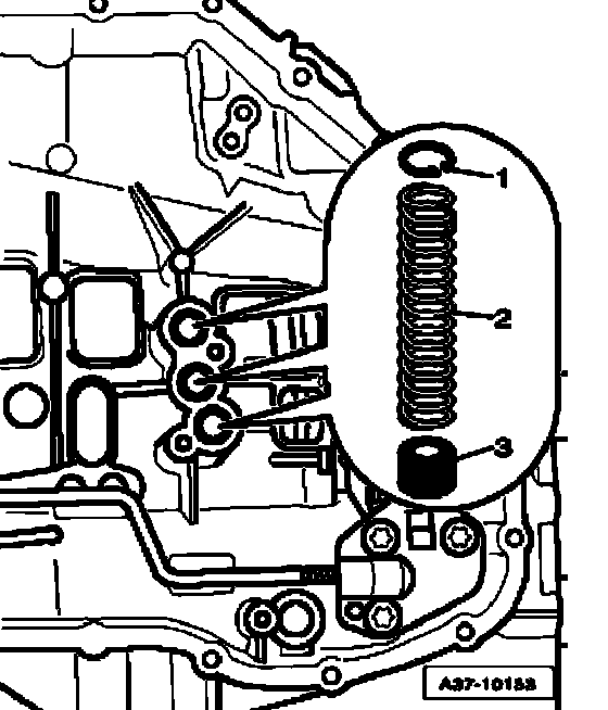 ^ Do not place removed valve body on Transmission Input Speed (RPM) Sensor G182 (on rear side of valve body, not installed in all versions) risk of damage.