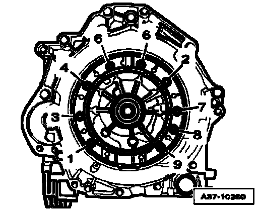 ^ Remove bolts for ATF supply in sequence - 9 to 1 -.