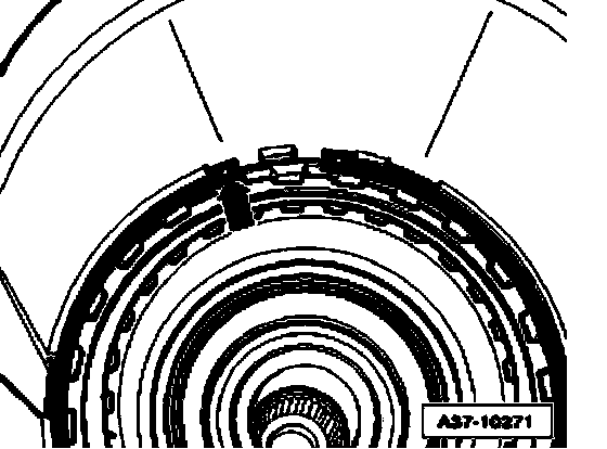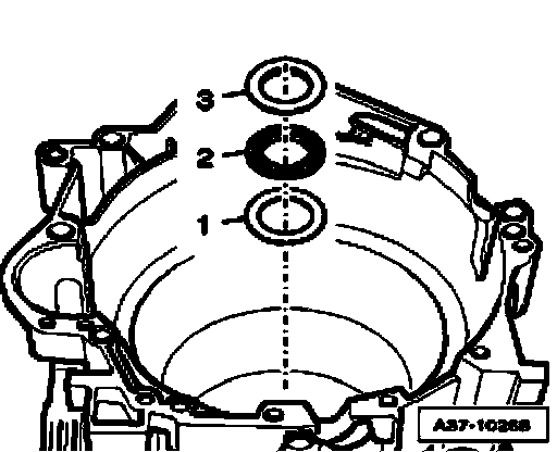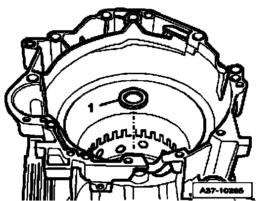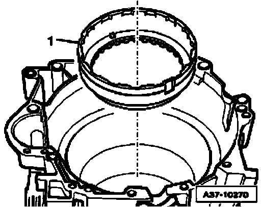 ^ Make sure that circlip is seated evenly all around in groove of transmission housing, if necessary, drive circlip into groove all around using drift.