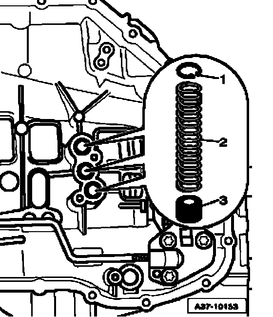 ^ Slide sealing sleeves - 3 - until stop and coil springs - 2 - into bores of transmission housing.
