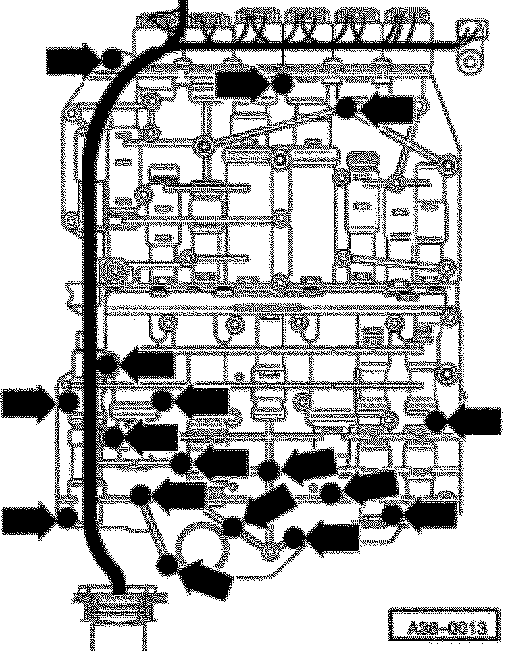 ^ Before inserting, thinly coat rectangular rings on ATF supply with Vaseline. Use only Vaseline, other lubricating substances cause functional problems in the hydraulic transmission control.