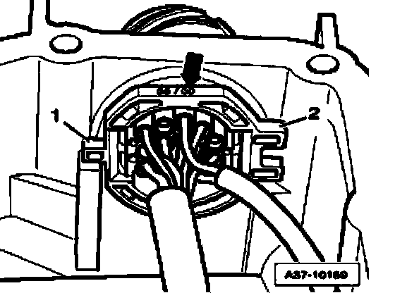 ^ Connect electrical harness connector - arrow - to Transmission Vehicle Speed Sensor (VSS) G38 or Transmission Output Speed (RPM) Sensor G195.