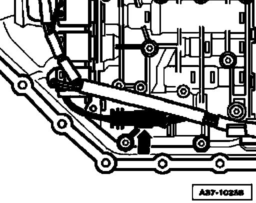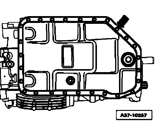 ^ Install ATF oil pan - arrow - with new seal.