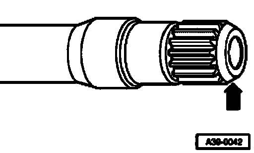 ^ Cover splines completely on end of flange shaft - arrow - with insulating tape without creasing or overlapping the tape to prevent damage to double seal when sliding in flange shaft.