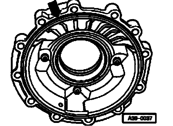 ^ Check whether centering sleeves - A - are inserted in intermediate flange.