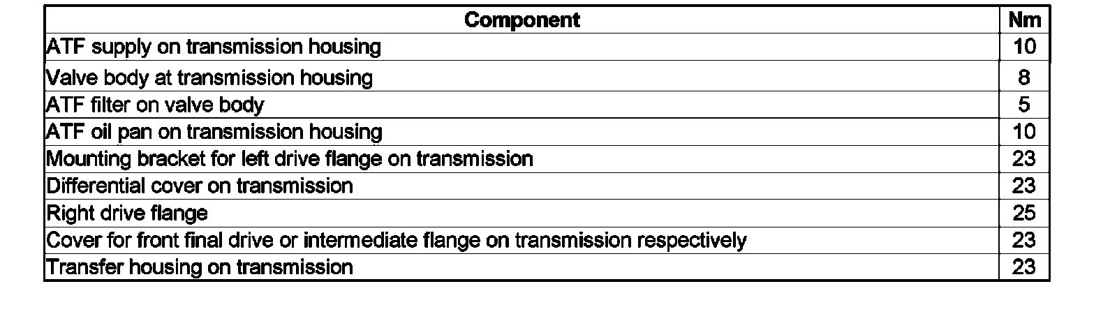 ^ When tightening bolts by hand, make sure the housing gap between intermediate flange for front final drive and transmission housing decreases evenly aft around.