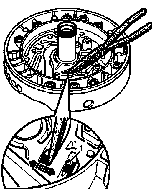 ^ Check whether coupling plates - arrows - on ATF pump wheel show pressure marks or are broken off, replace ATF pump if necessary.