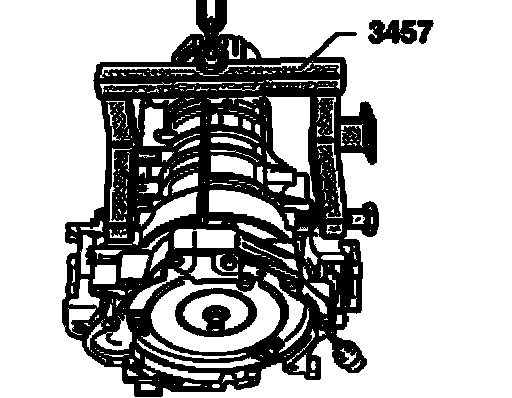 ^ Venting for the transmission housing and final drive must be closed before turning a filled transmission with oil pan upward on the engine and transmission holder.