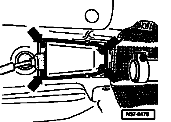 ^ Shift the lever/selector shaft at the transmission in "P" position. Catch must engage in parking lock gear, both front wheels are locked (cannot be turned together in one direction).