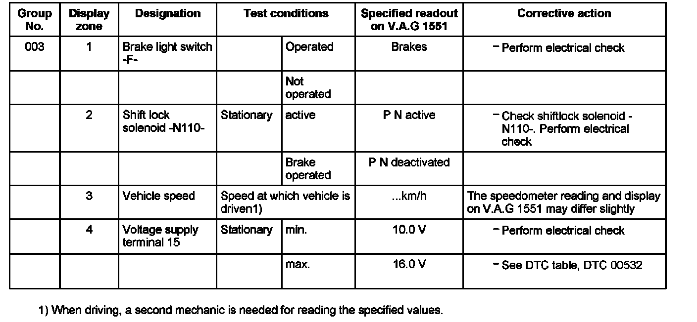 Scan Tool Testing - 01V, 5 SPD. A/T (OBD)