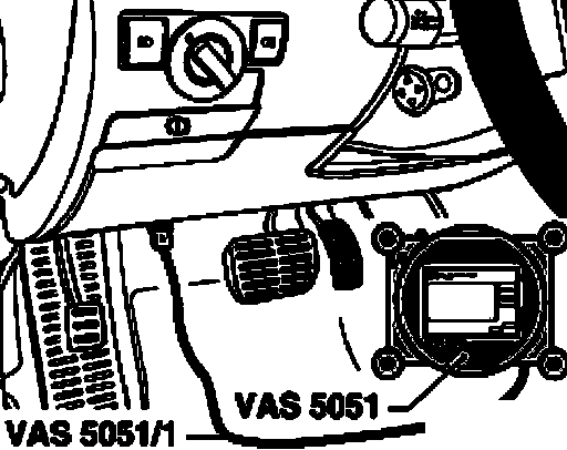 - Plug the connector of diagnostic cable VAS5051/1 or VAS5051/3 into the vehicle Data Link Connector (DLC).