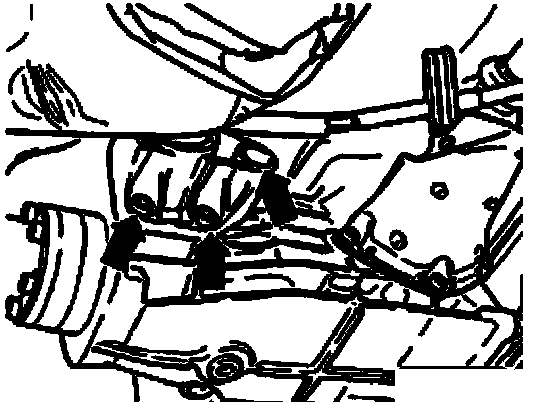 ^ Remove securing bolts - arrows - of left transmission support.