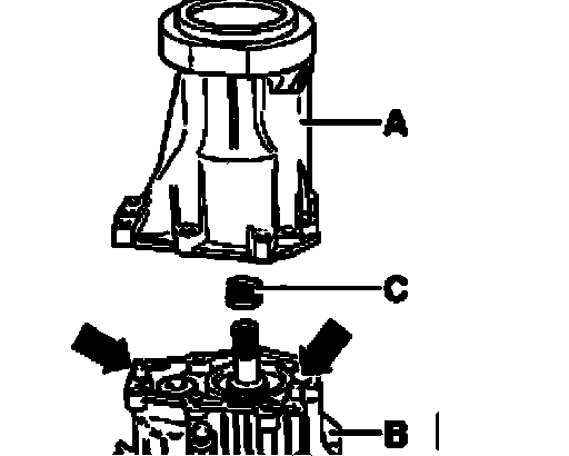 ^ Remove compression spring - C - from pinion shaft.