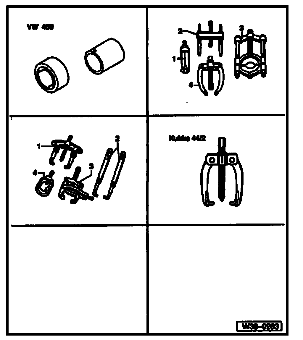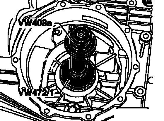 ^ Insert pressure piece VW 472/1 together with cone in outer race.