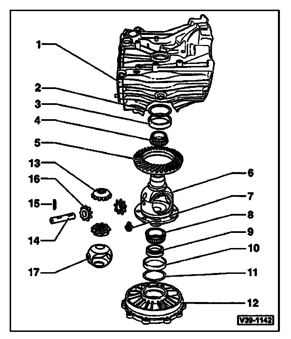 ^ As of 05.03, beating seat for left tapered roller beating on differential housing was equipped with a larger radius at inner stop. Inner race of left tapered roller beating was also modified accordingly. Tapered roller beatings of the old construction type can no longer be installed along with new differential housing. Allocation Electronic Parts Catalog (ETKA).