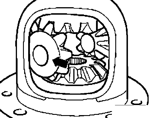 ^ Drive in differential bevel gear shaft to final position and secure.