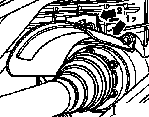 ^ Remove cover plates over right drive axle - arrow 1 - and - arrow 2 -.