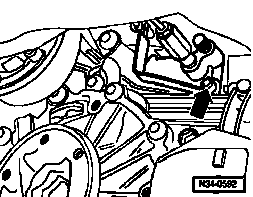 ^ Set transmission jack under vehicle, arrow symbol - B - (Fig. V34-2583) on adjustment plate points in direction of travel/vehicle.