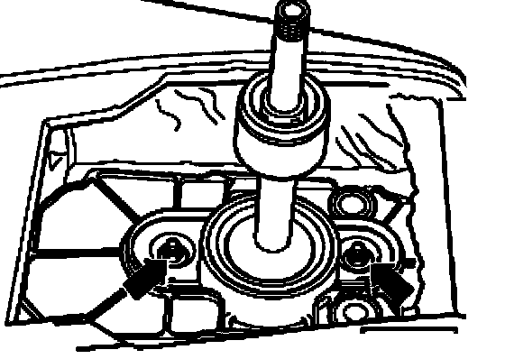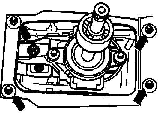 ^ Remove mounting nuts - arrows - for shift mechanism housing.