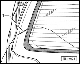 - Insert guide needle - 2 - from Window removing kit V.A.G 1755 using handle - 1 - under sealing lip and push through adhesive bead (use side areas, wear gloves).