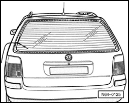 - Disconnect harness connectors for heated rear window and press connector tabs onto window.