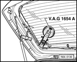 - As shown in illustration, one suction cup can be removed from Spooling tool V.A.G 1654. By doing this, roller of Spooling tool V.A.G 1654 A can be placed closer to window flange.
