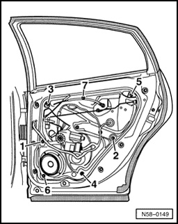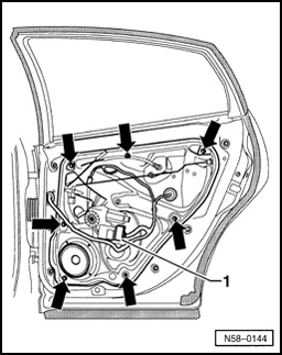 If door window cannot be lowered using electric window regulator, proceed according to description as found on pages:.
