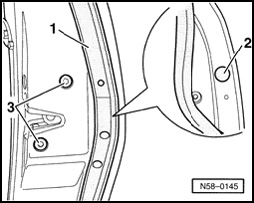 - Press out spreader plug - 3 - from door window using a drift - dia. 3 mm.