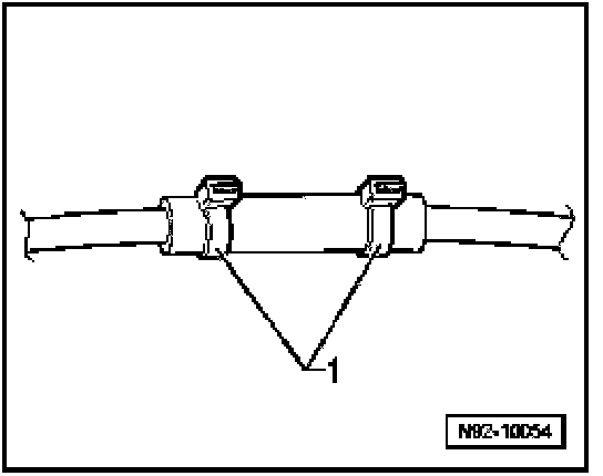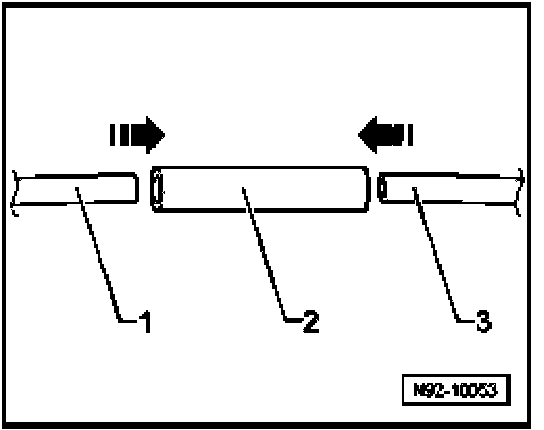 - Insert hose -1- and -3- into ends of EPDM repair hose -2- to a depth of at least 10 mm -arrows-