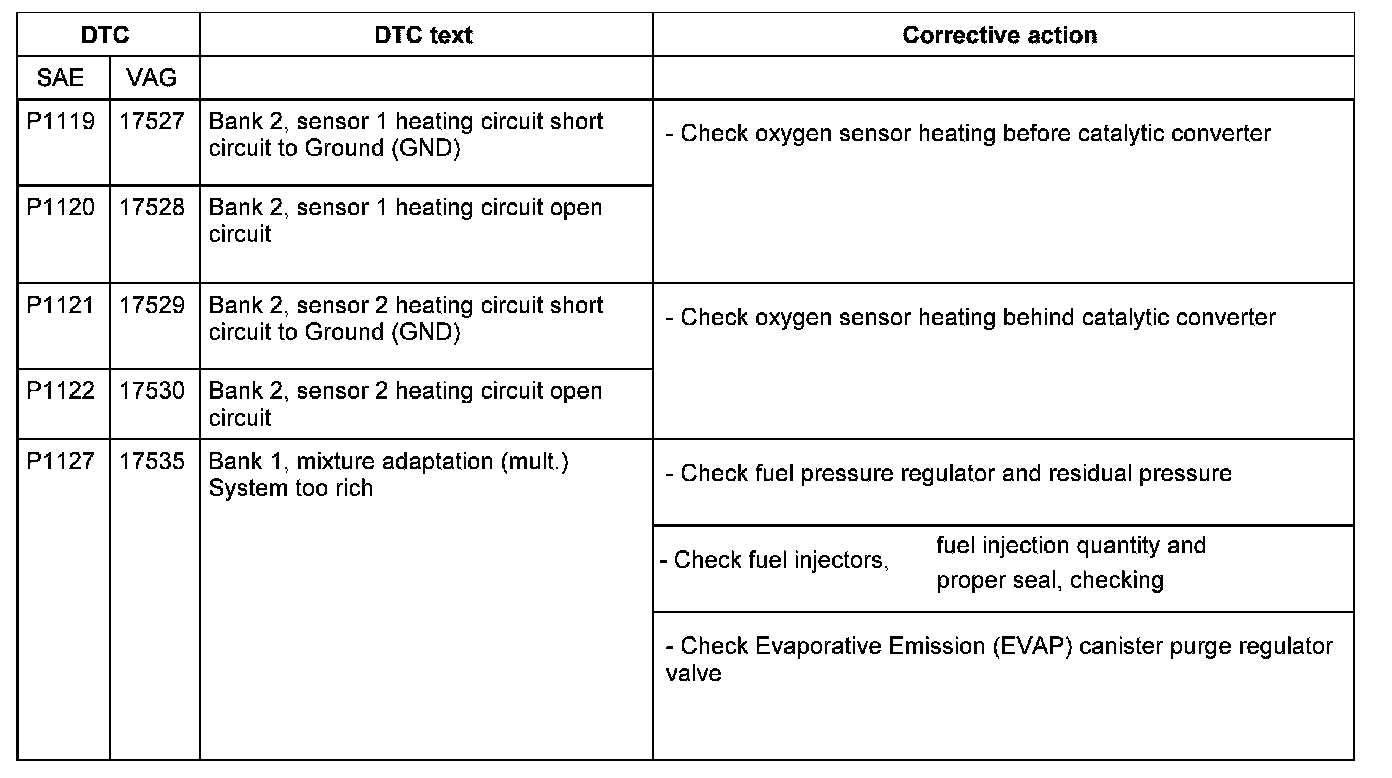 DTC P1119 - P1127: