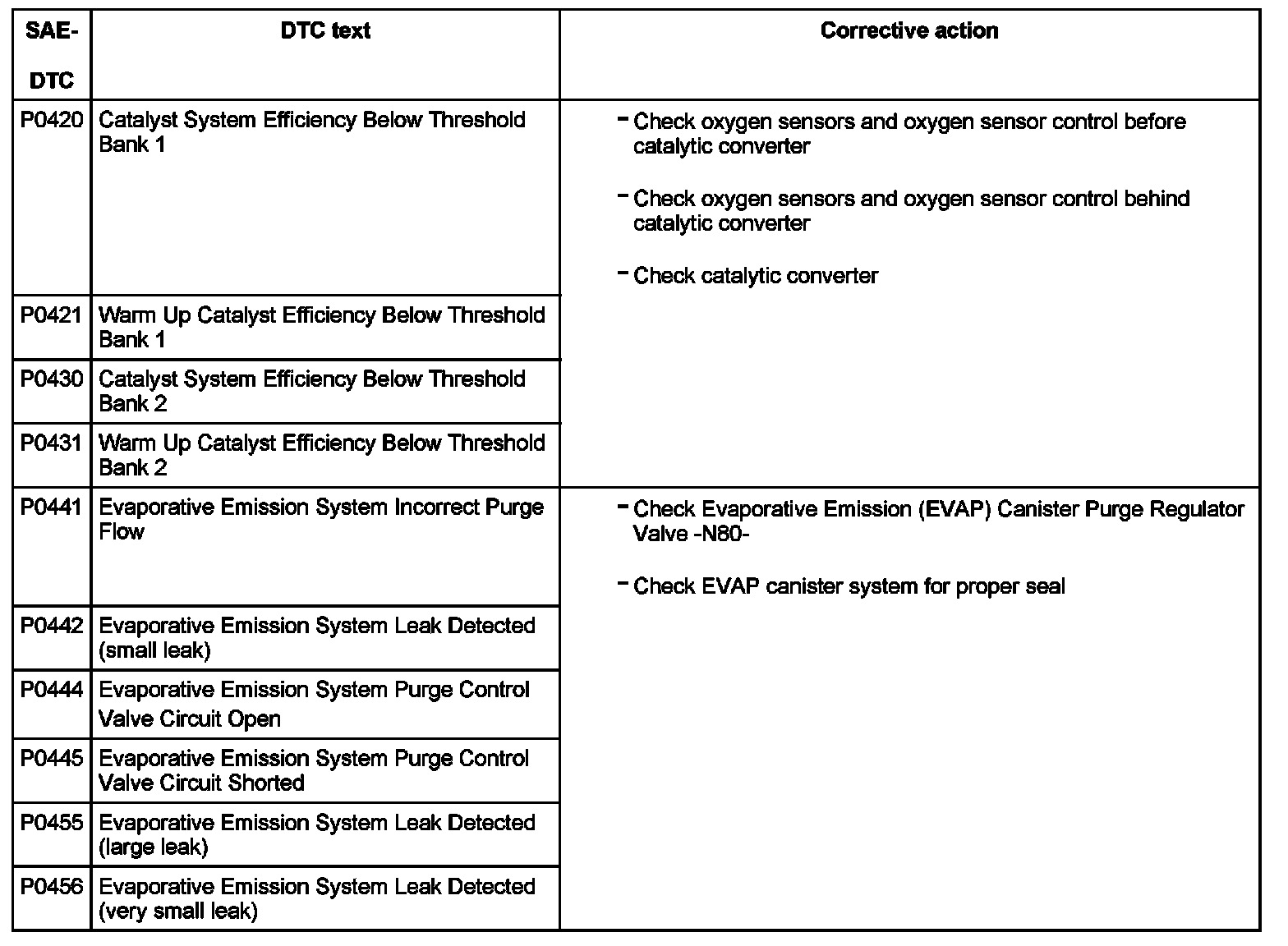 DTC P0420 - P0456: