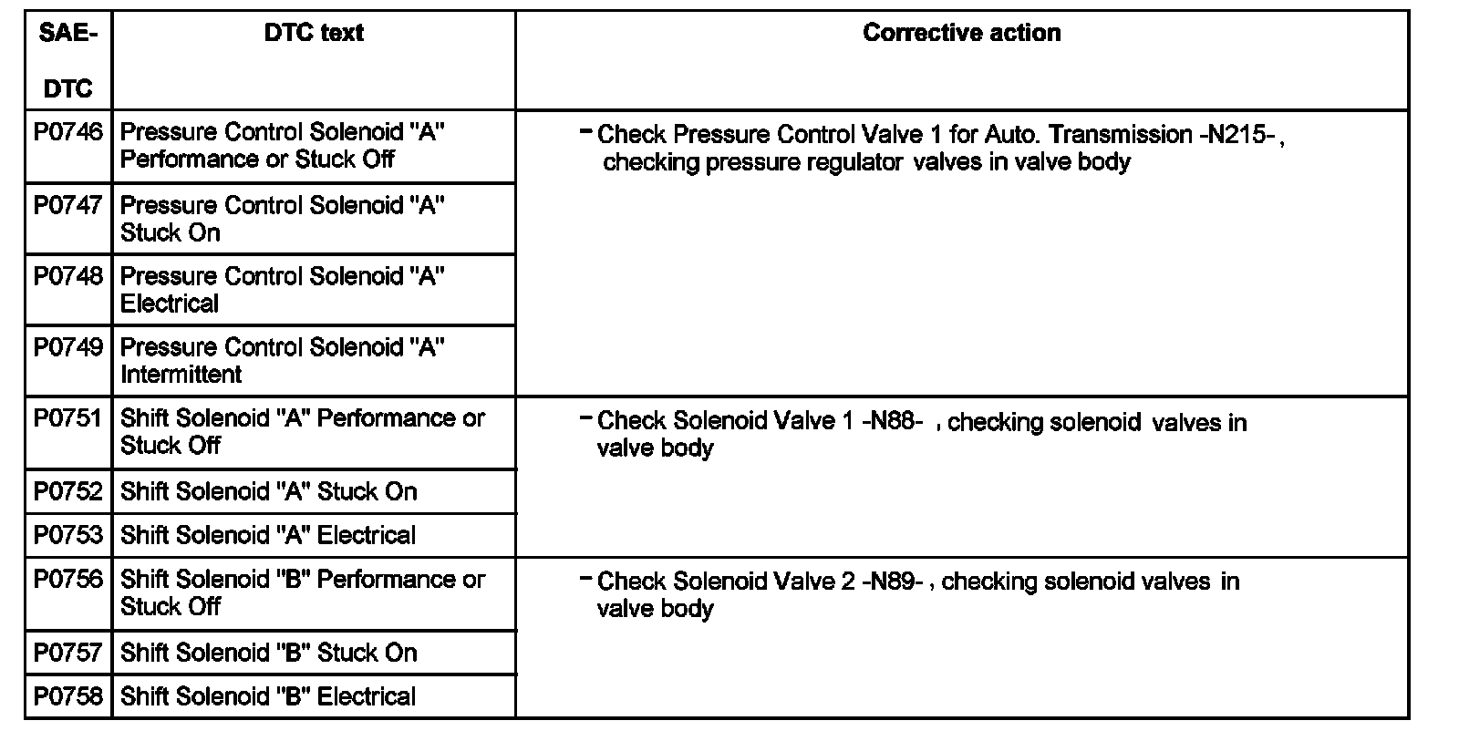 DTC P0746 - P0758: