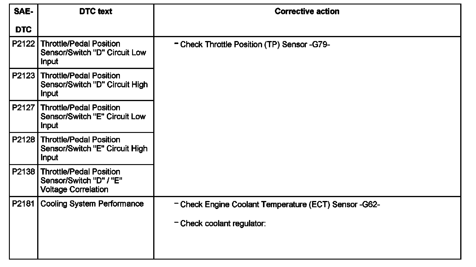 DTC P2122 - P2181: