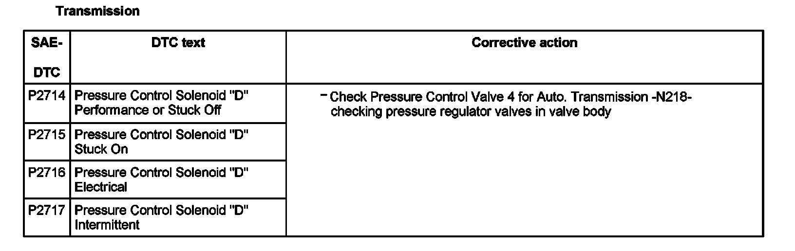 DTC P2714 - P2717: