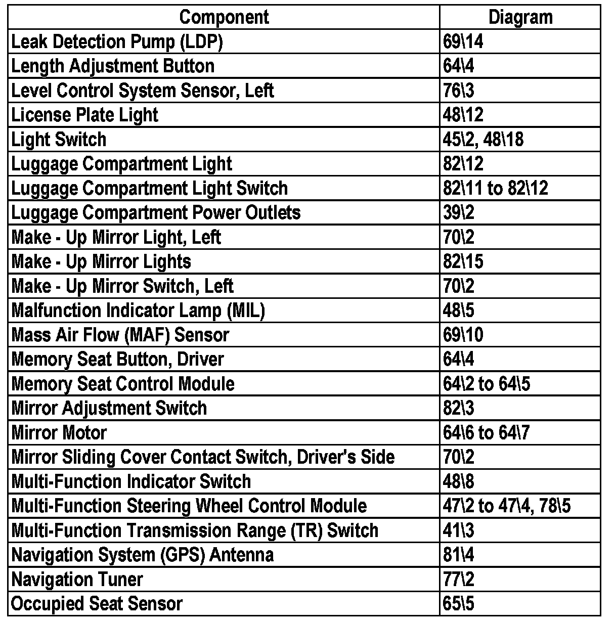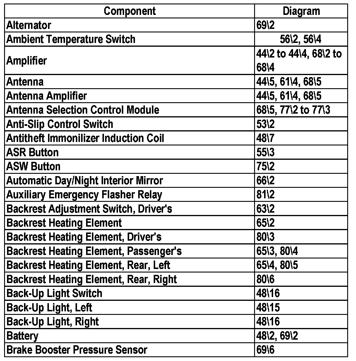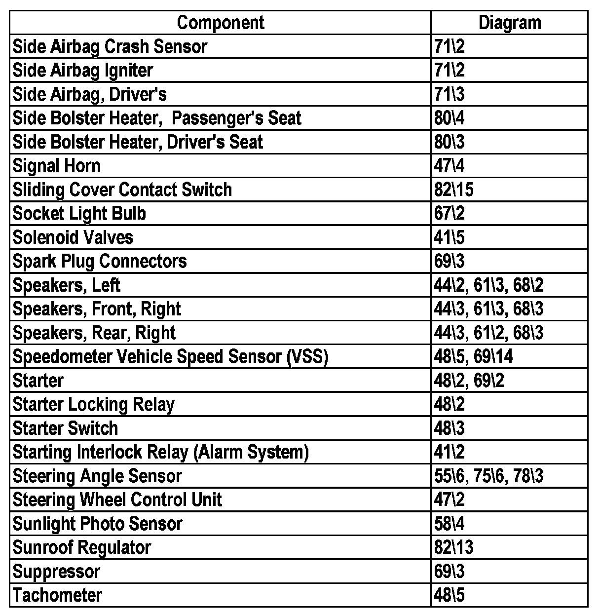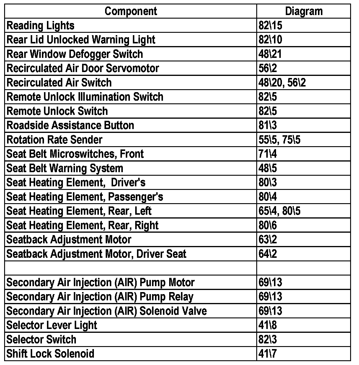 Master Diagram Index