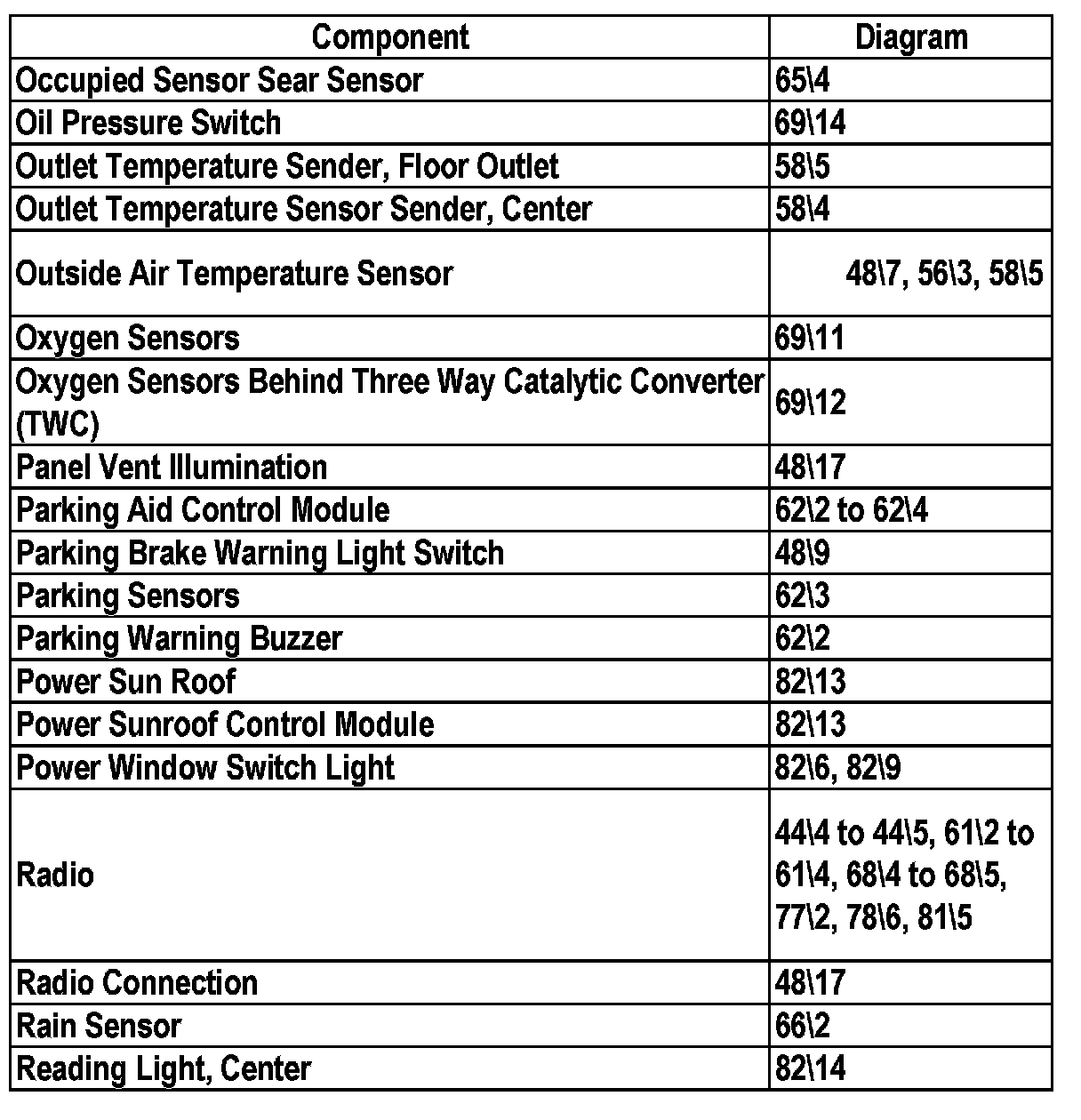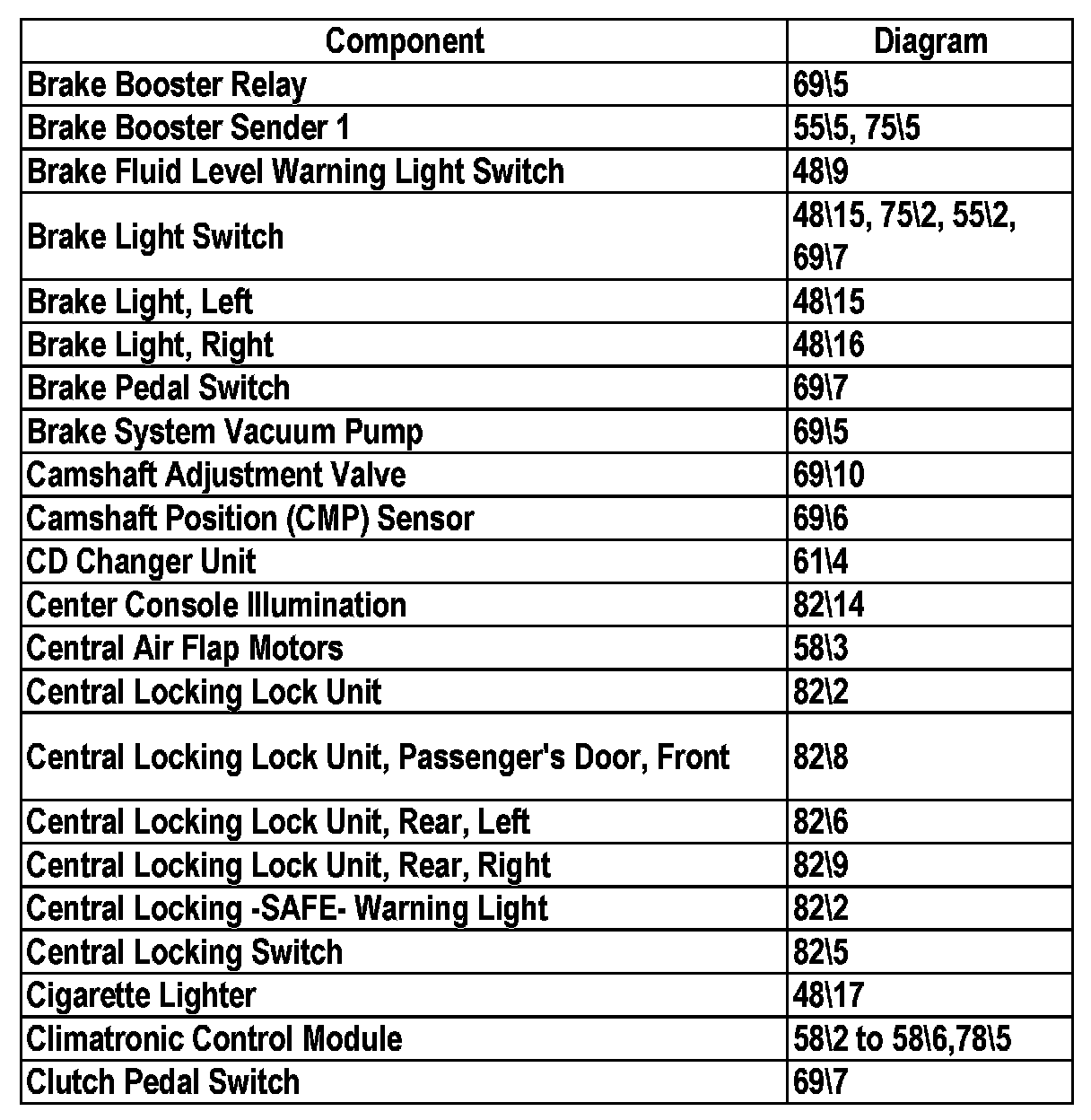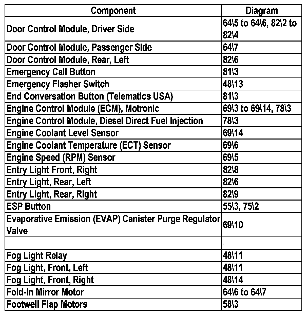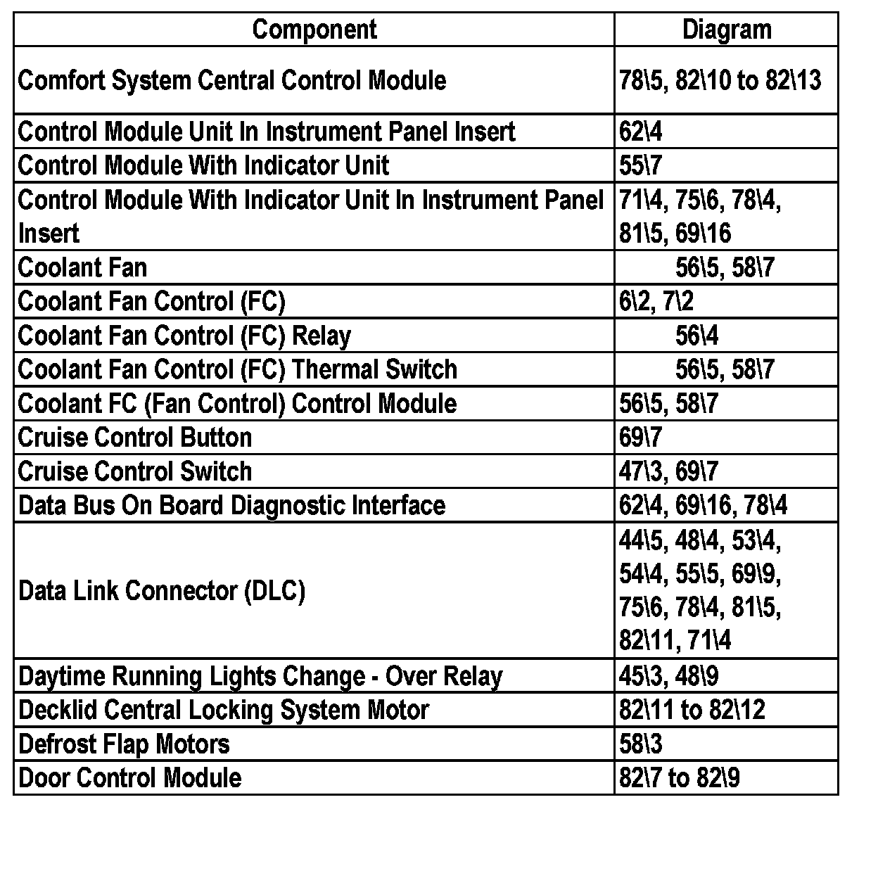 Master Diagram Index