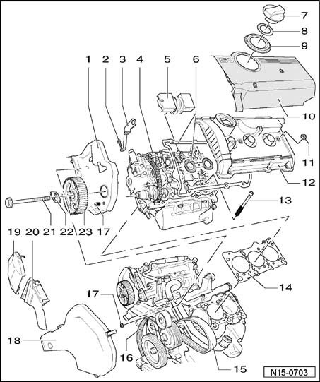 ^ Before installing, coat cover/cylinder head contact surfaces with sealing compound D 454 300 A2