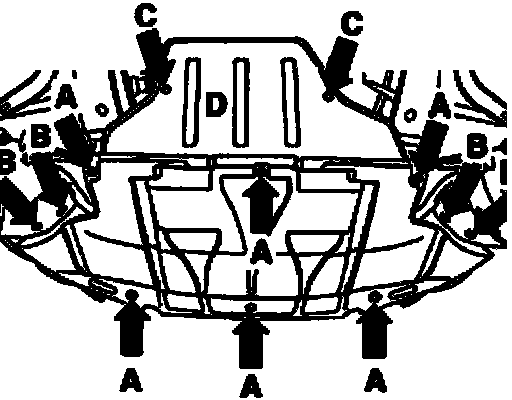 ^ For vehicles with noise insulation - D -, remove bolts - arrows C -.