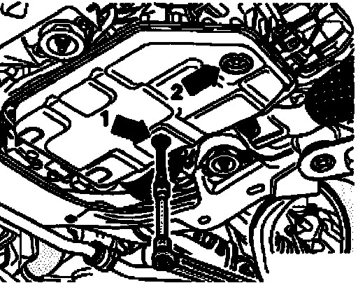 ^ Remove ATF check plug - arrow 2 -.