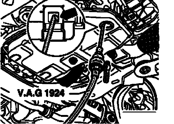 ^ Secure reservoir of ATF filler tool V.A.G1924 to vehicle.