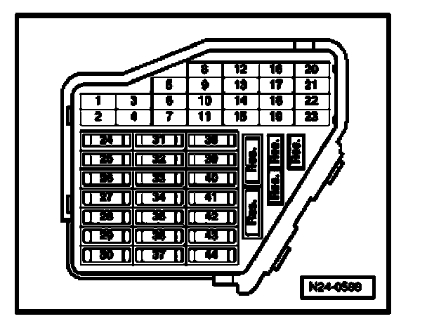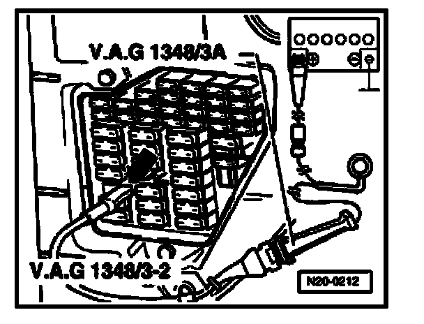 - Connect remote control V.A.G 1348/3A with adapter cable V.A.G 1348/32 to contact 28a to fuel pump and battery positive (+)