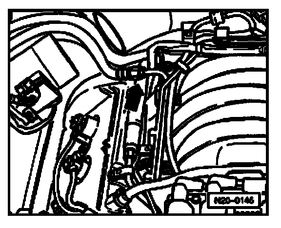 - Pressure gauge V.A.G 1318 connected to fuel supply hose from fuel supply line