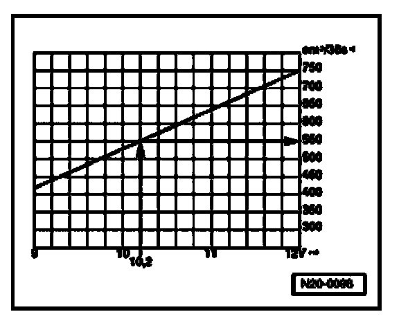 Example: During the test, a voltage of 12.2 volts is measured at the battery. As the voltage at the pump is approx. 2 volts less than the battery voltage then this will equate to a minimum delivery of 550 cubic cm/30 s.