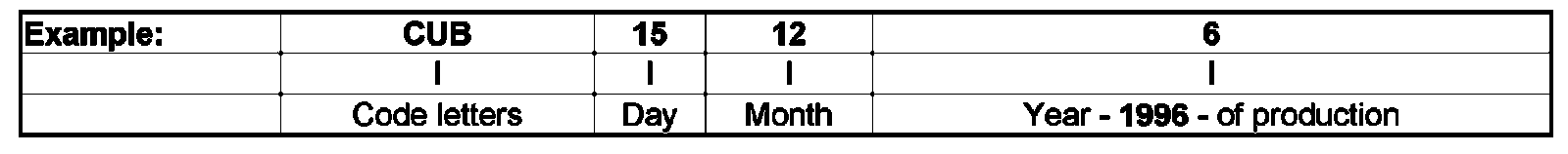 Code letters and date of construction - arrow 1 -