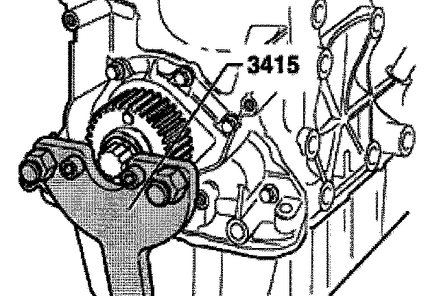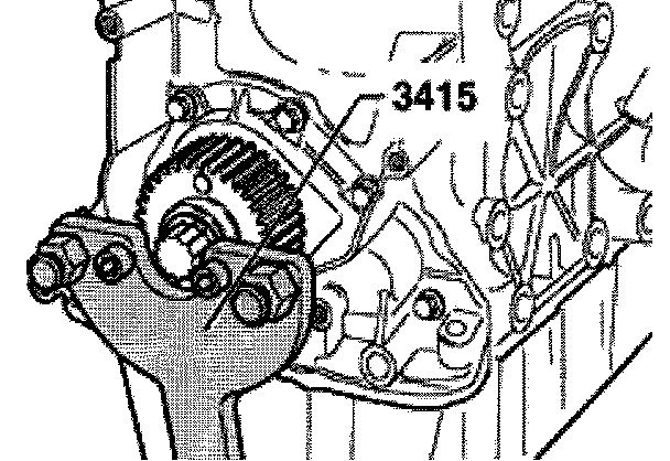 - Remove crankshaft toothed belt gear. Secure toothed belt gear using 3415 spur belt spreading.