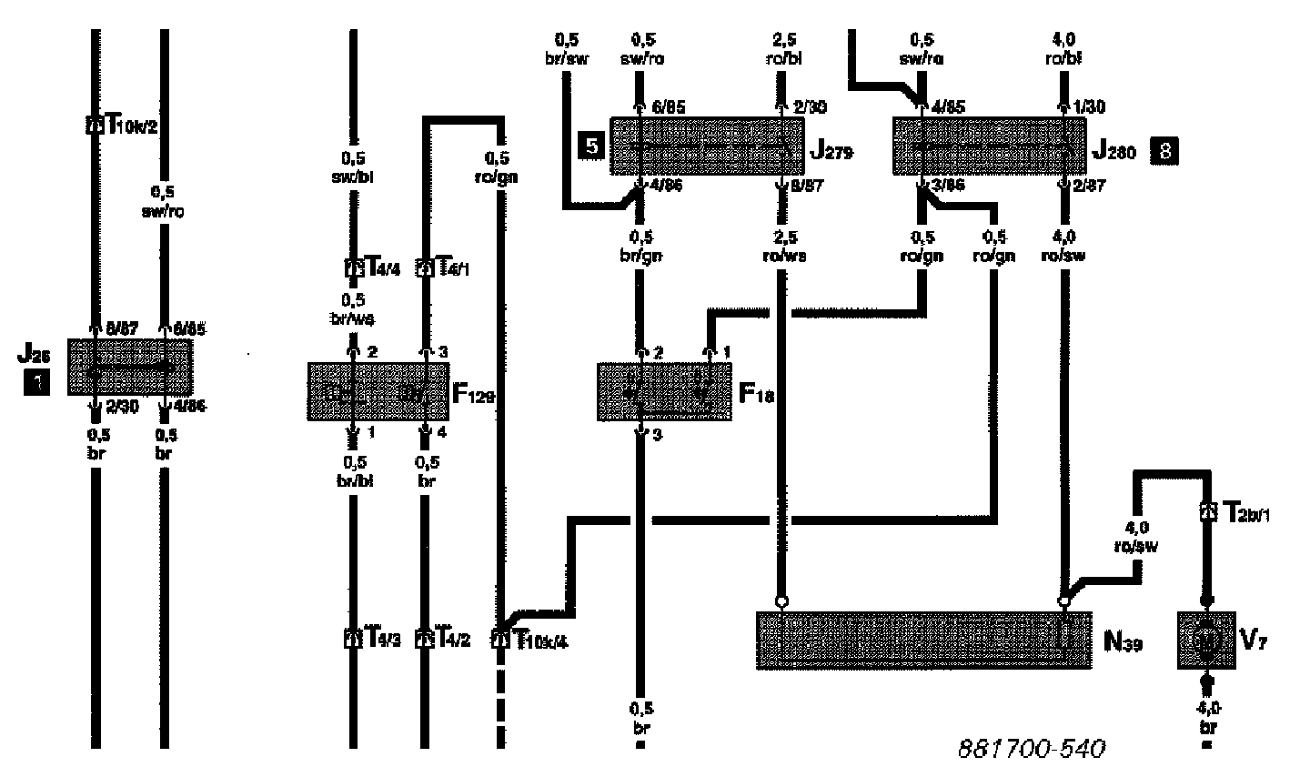 (Alldata Editor's Note: This article is for vehicles with manual A/C. Vehicles with Climatronic is similar except that it uses the Climatronic Control Module -J255- instead of the Coolant Fan Control Relay -J26-. Always refer to the appropriate wiring diagrams when diagnosing cooling fan faults.)