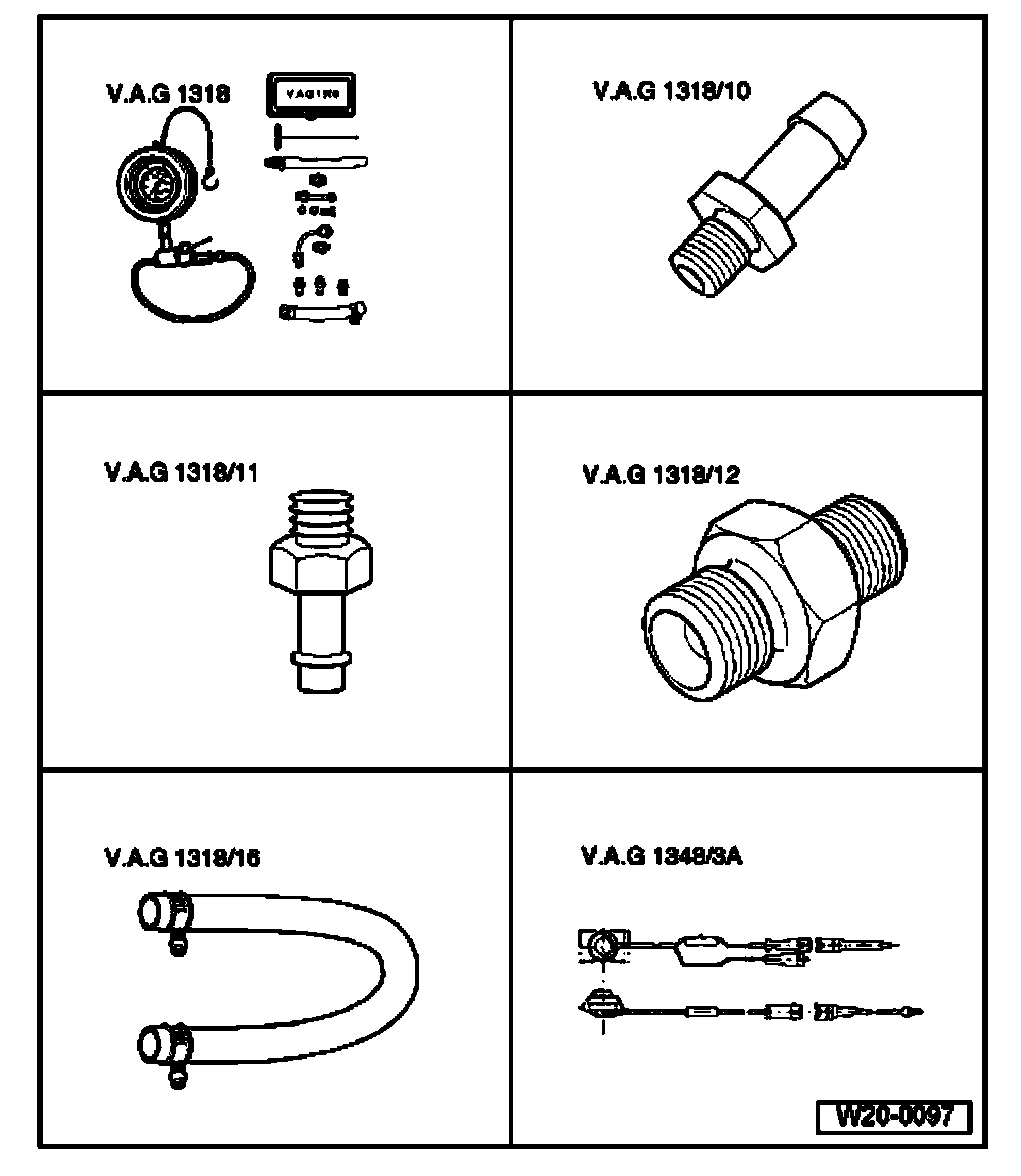 - Pressure Gauge V.A.G 1318 connected to fuel supply line of fuel supply tube