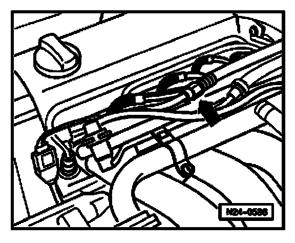 - Connect Multimeter V.A.G 1715 to wire of 4-pin connector terminal 1 - arrow - using current pick-up.